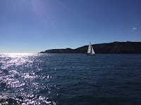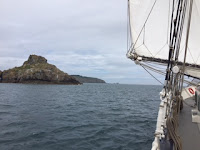 Morgens um 8:00 geht es erstmal ohne Frühstück los, um die Strömung bestmöglich zu nutzen. Nachdem wir dann alles an Segeln oben haben, was möglich ist, laufen wir halben Winds mit etwa 6 Knoten Nord-Ostwärts.