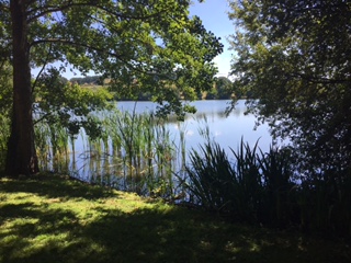 Vorbei an netten Grundstücken und und verschwitzten Joggern kommen wir in Change an. Dort liegt rechter Hand ein kleiner See, der einem Segelclub als Heimat dient. Da sich aber ausser unserer Atmung kein Lüftchen regt, bleiben die Boote wohl in ihren Lagern.