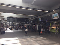 Da wir noch etwas Zeit haben, setzen wir uns in ein Straßenlokal, genießen das schöne Wetter und ein paar Getränke. Dann geht es weiter zum Bahnsteig und man fühlt sich gleich zuhause – der Zug hat Verspätung 😉