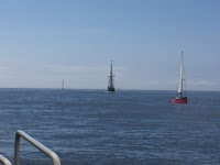 Anschließend legen wir ab. Da die Windrichtung ungünstig ist, wir aber den Gezeitenstrom ausnutzen wollen, geht es erstmal mit Maschinenkraft los. Das gibt der Stammcrew Zeit, die Fahrgäste in die Rettungsmittel, die Segel und ein paar notwendige Knoten einzuweisen.