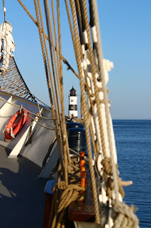 So führt uns die heutige Etappe dann an aus der Kieler Bucht heraus, an Bagenkop vorbei, in den Großen Belt. Die See ist in diesem Teil heute so ruppig, dass wir drei Ausfälle wegen Seekrankheit zu verzeichnen haben. Dann geht es Nordwärts an der Insel Langeland entlang. Wegen der Landabdeckung durch die Inseln ist es hier etwas ruhiger und die Seekranken erholen sich so langsam. Auch feste Nahrung geht schon wieder.